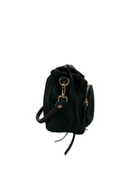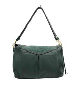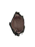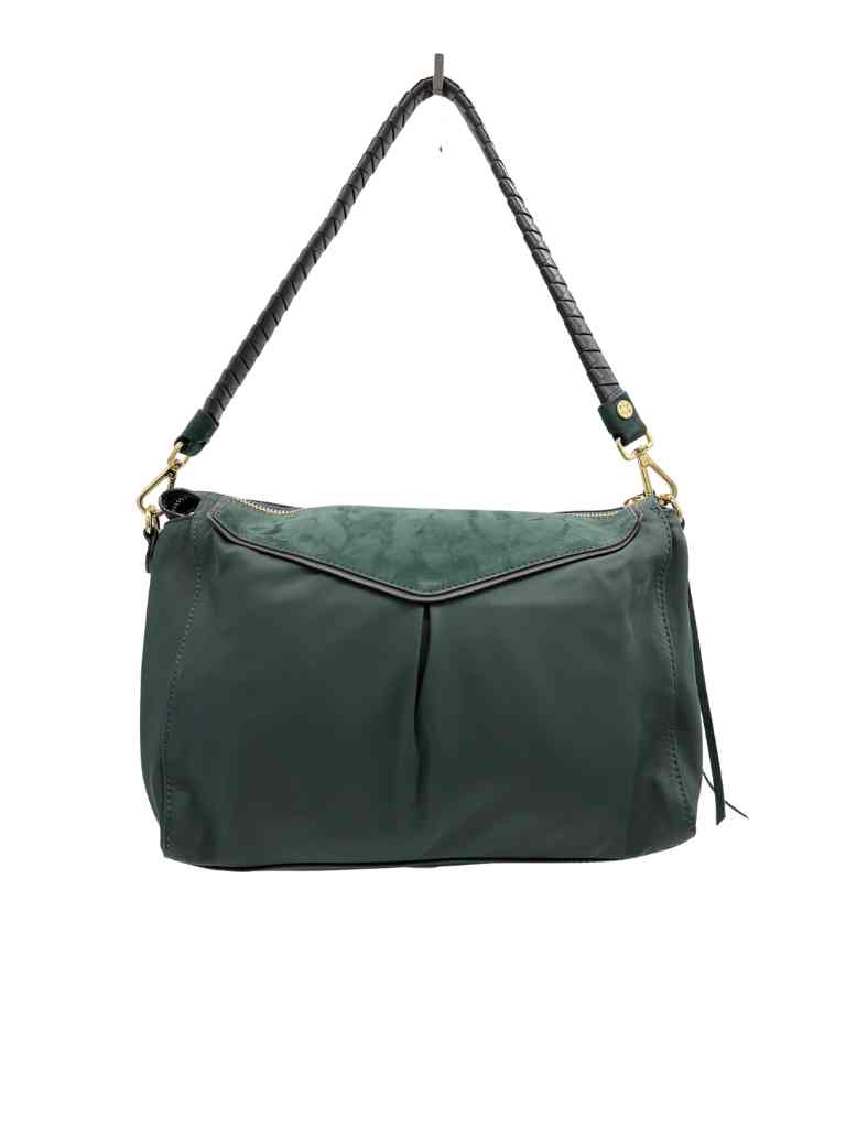 green suede nylon to handle bag w crossbody strap