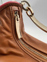 Camel Brown Gold Chain Strap Hobo Handbag w/ Strap