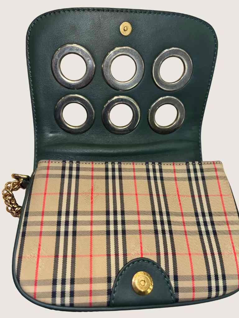 TAN PLAID GRN TRM 1983 GROMIT SHOULDER BAG